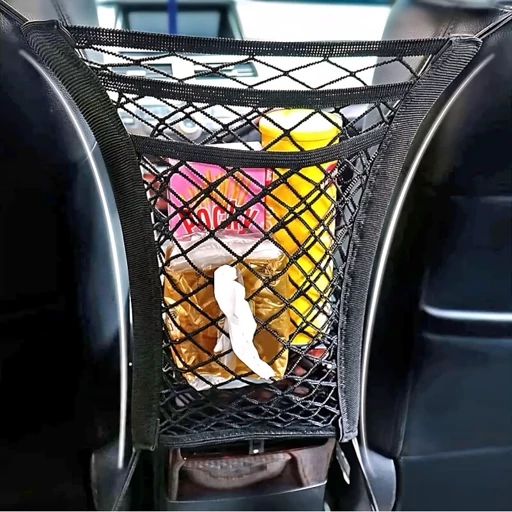 این نظمدهنده از جنس توری بادوام و کشسان ساخته شده و بهترین نقطه برای نصب آن بین دو صندلی جلوی خودرو است. دارای چهار قلاب و بند الاستیکی است که نصب آسان و ثابت نگه داشتن آن را در هر نوع خودرو ممکن میسازد. جیب بزرگ محصول فضای کافی برای نگهداری بطری آب، خوراکی، دستمال یا سایر لوازم ضروری سفر فراهم میکند و در عین حال طراحی مشبک آن مانع از دیده نشدن محتویات میشود.
